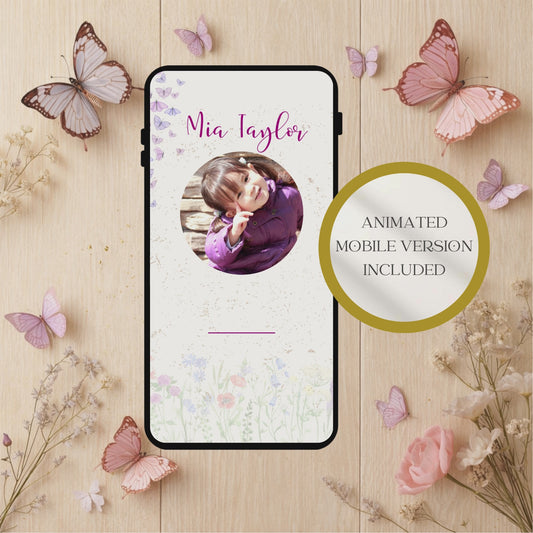 Butterfly Birthday Invitation | Girl Butterfly Party Invite | Editable Photo Birthday Invitation | Mobile Invitation | Animated Invitation